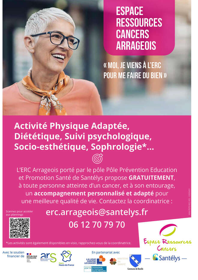 Financé par l’Agence Régionale de Santé et la Région Hauts-de-France, l’ERC de l’Arrageois propose des Soins Oncologiques de Support gratuits, individuels et collectifs, destinés à améliorer le bien-être physique, psychologique et social des bénéficiaires.