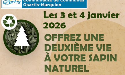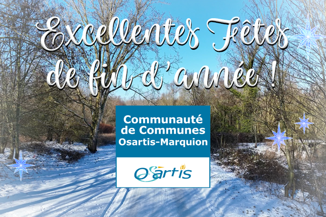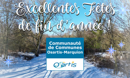 À l'occasion des Fêtes de fin d'année, la Communauté de Communes Osartis-Marquion fermera ses bureaux ainsi que les Pôles Entreprises et Numérique et les déchèteries communautaires les 25/12 et 1er janvier