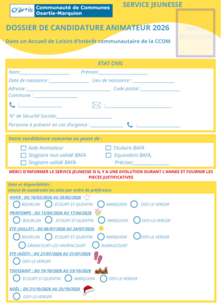 Dossier de candidature animateur 2026
