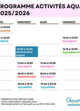 Découvrez le programme des activités aquatiques de l'espace Aqualudique Aquatis