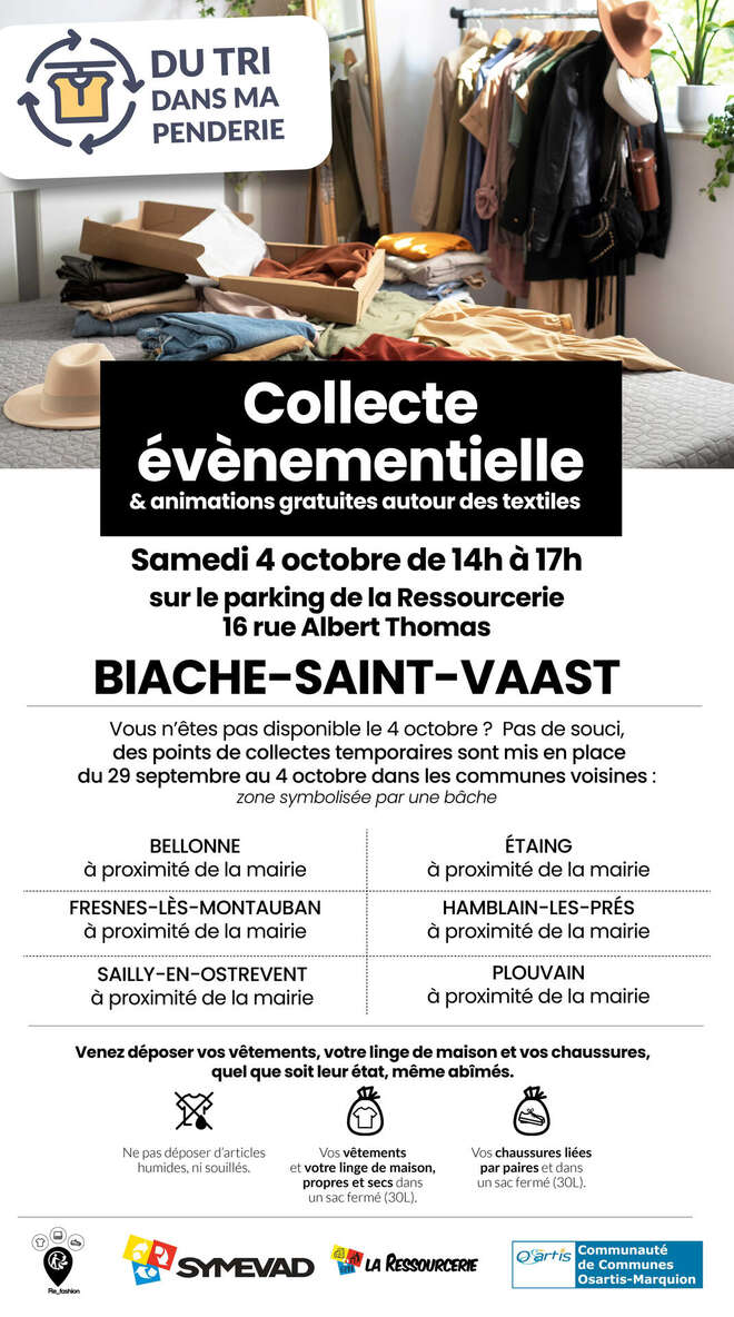Après une première collecte le 20 septembre à Baralle, le prochain rendez-vous sur le territoire est le 4 octobre à Biache-Saint-Vaast de 14h à 17h sur le parking de la ressourcerie.