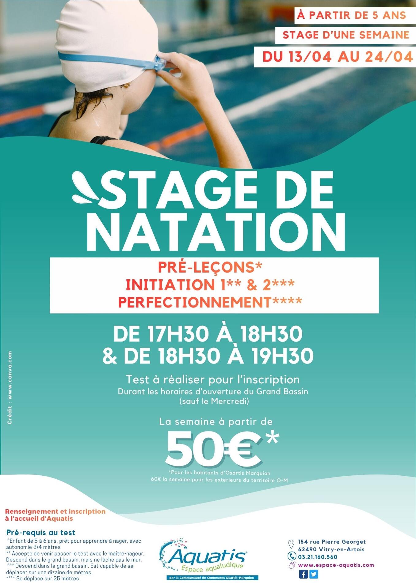 Votre centre aqualudique Aquatis propose des stages de natation aux enfants à partir de 5 ans, pendant les Vacances de printemps du 13 au 24 avril.