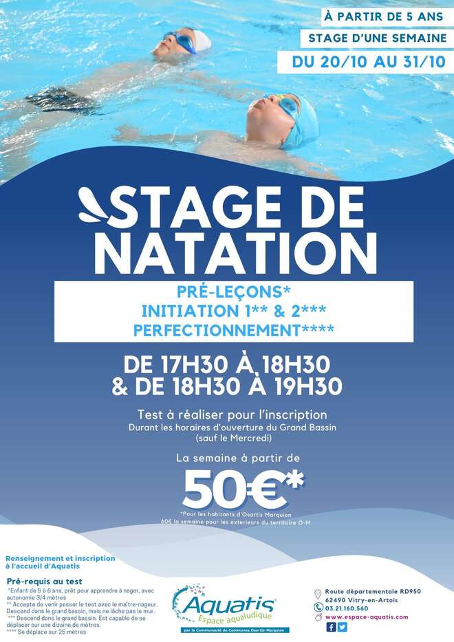 Votre centre aqualudique Aquatis propose des stages de natation aux enfants à partir de 5 ans, pendant les Vacances de Toussaint du 20 au 31 octobre.