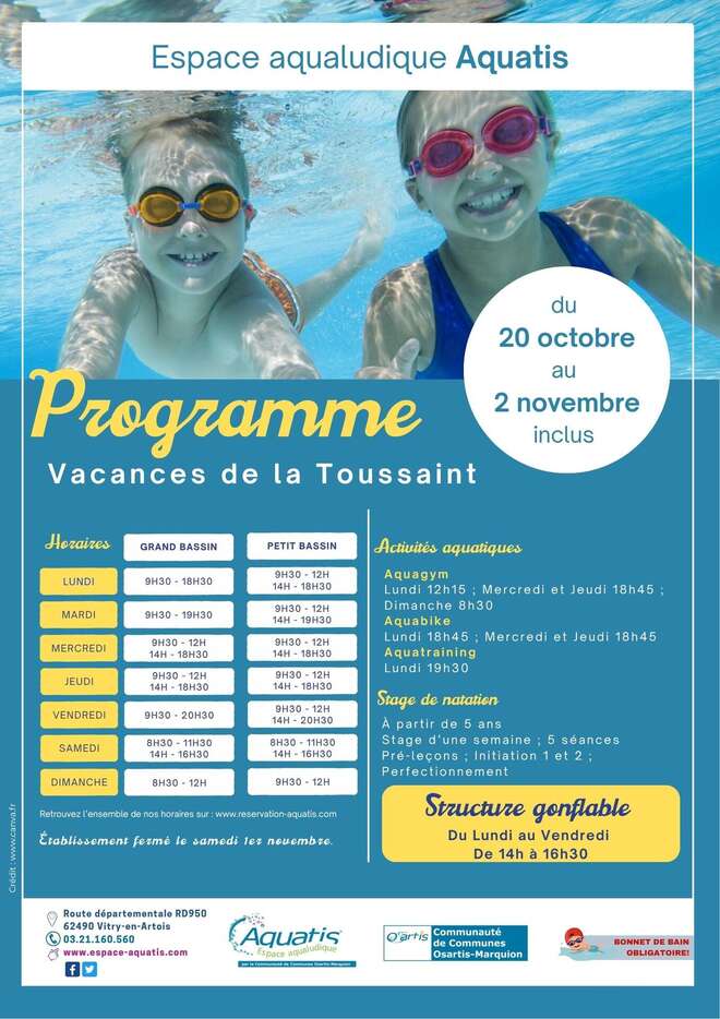 Du 20 octobre au 2 novembre inclus : - Activités aquatiques, - Stages de natation - et structures gonflables au programme d'Aquatis