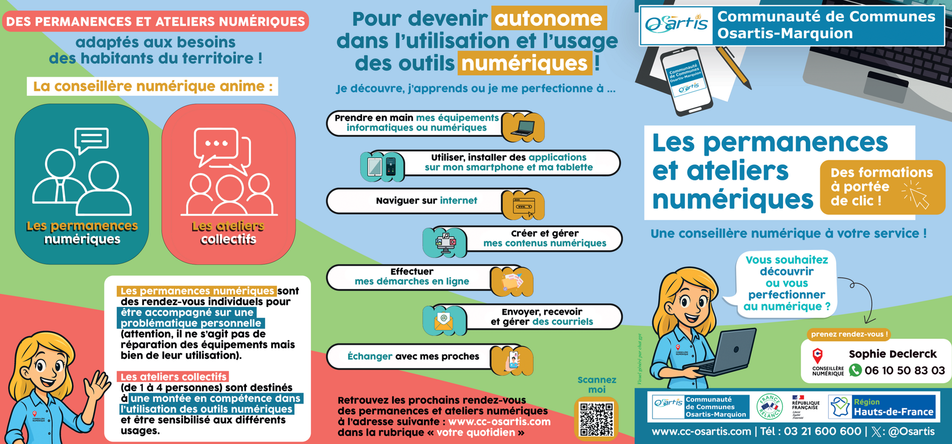 La Communauté de Communes poursuit ses actions de prévention contre la fracture numérique. De nouvelles dates sont disponibles pour les permanences et les ateliers numériques pour apprendre et prendre en main vos outils numériques sur l’ensemble du territoire d’Osartis-Marquion.
