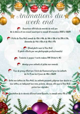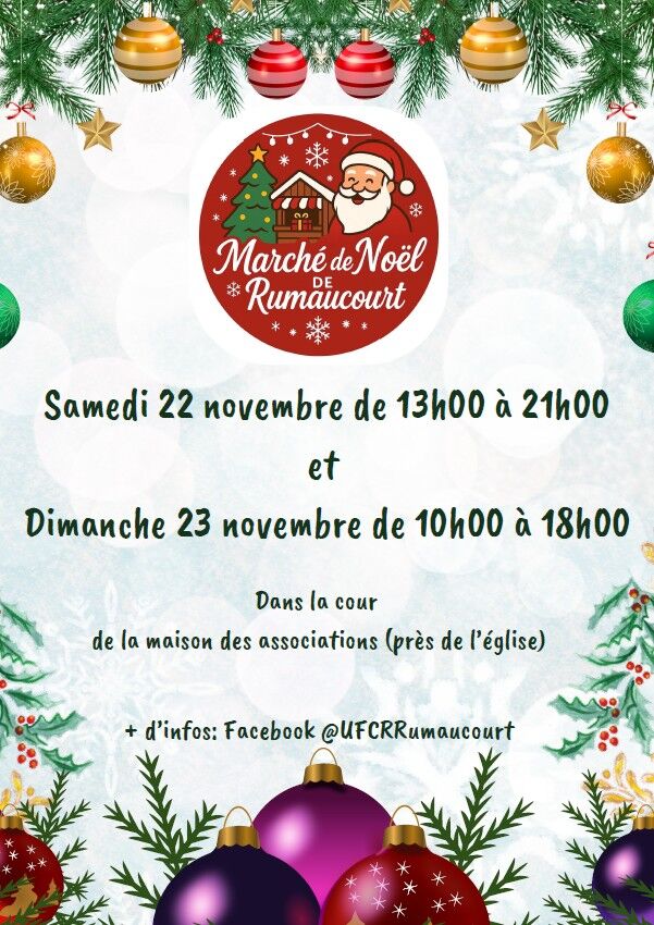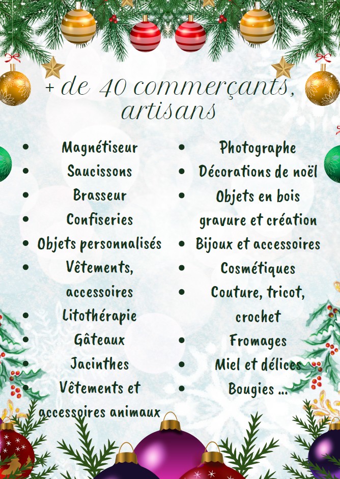 Sous des chapiteaux : nombreux exposants (+ de 40 artisans). Manèges - Confiseries. Repas par food truck. Nombreuses animations : Père Noël, stand photo, chants des enfants de l’école, tombola, buvette, tours de poneys… Inscriptions pour les exposants à partir de septembre (nombre de places limitées). Organisé par UFCR, mairie et autres associations du village.