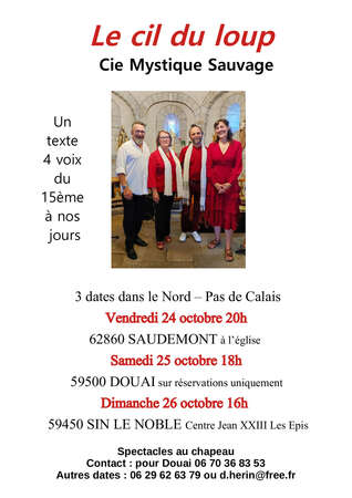 Vendredi 24 octobre. Concert "Le Cil du loup". À 20h, à l'Église de Saudemont.