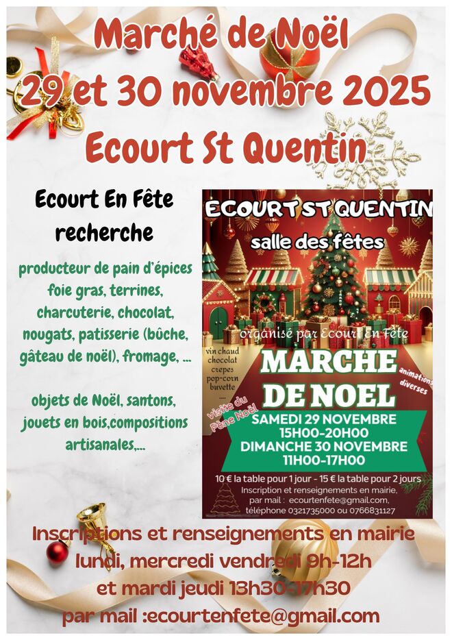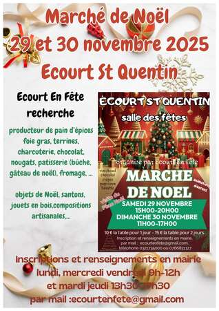 Samedi 29 et dimanche 30 novembre. Marché de Noël. Organisé par Écourt en Fête.