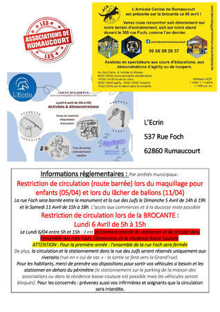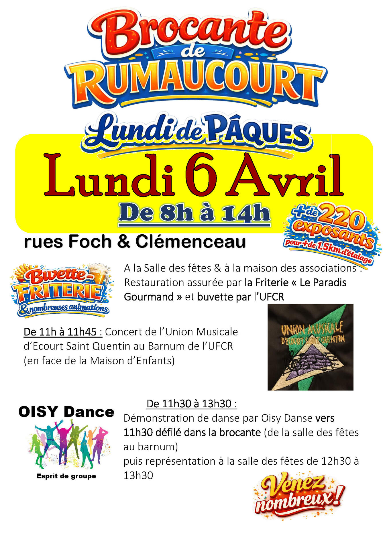 Restauration assurée par Le Paradis Gourmand Événementiel à la salle des fêtes et à la maison des associations + Buvettes assurées par Union des Festivités et Cérémonies Rumaucourtoises. + de 1500m d’étalage et 220 exposants.
