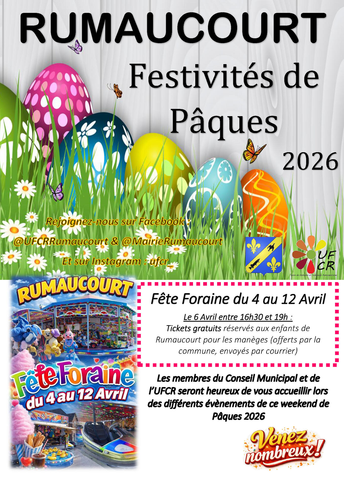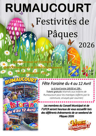 A partir de 16h30 : Tickets gratuits aux manèges offerts par Mairie de Rumaucourt aux enfants de Rumaucourt (ils seront déposés dans les boîtes aux lettres)
