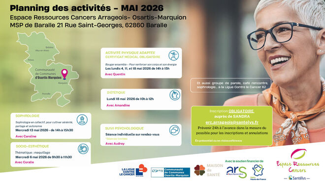 Inscription OBLIGATOIRE auprès de SANDRA : erc.arrageois@santelys.fr